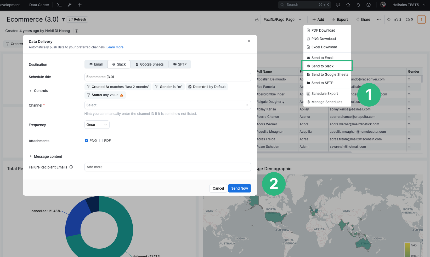 Enabling Slack integration to deliver scheduled reports/dashboards to your Slack team. This helps your team keep in touch with the latest data changes as well as start discussing data questions instantly from Slack.